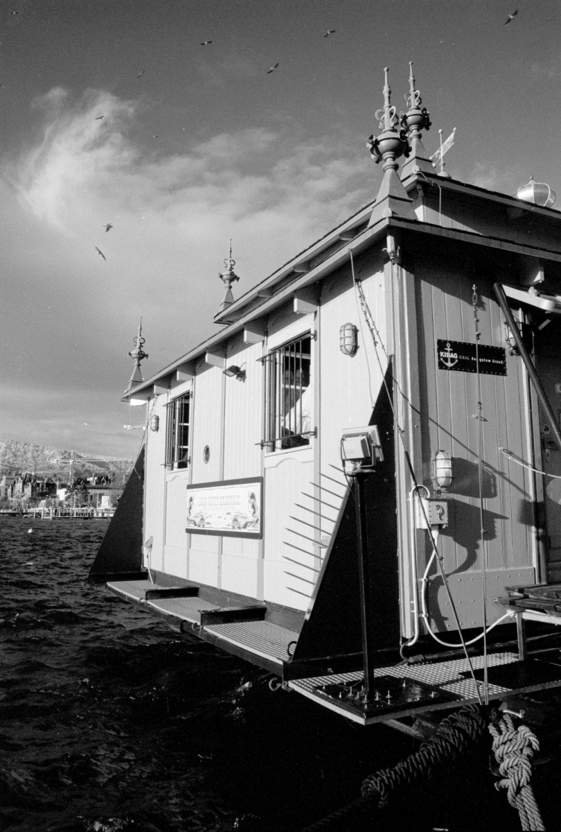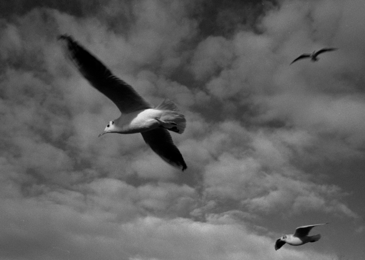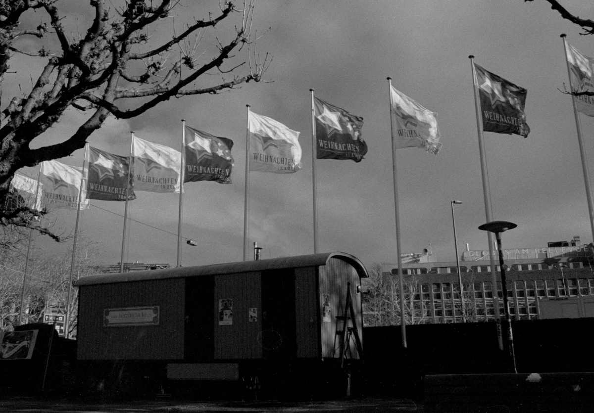 Es kommt anders als geplant. Und zwar noch erstaunlich oft, wie wir alle wissen. Eigentlich wollten wir heute mit dem Auto zum Greifensee fahren und dort ein wenig nach dem Rechten sehen, sprich: ein Weilchen Spazierengehen. Doch der gestrige Schneefall, der so nicht vorhergesagte Frost und die daraus resultierenden Strassenverhältnisse, machen so gar keine Lust auf diese Unternehmung. Ergo mache ich mich an diesem Morgen mit der Konica, dem Weitwinkelobjektiv samt Orangefilter, und einem Schwarzweissfilm zu Fuss auf den Weg.   Dieses zu Fuss hat aber auch seine Tücken. Die Gehwege sind überfroren und das Laufen auf eben jenen ist nicht ohne. Ich schaffe es bis zur nächsten Tramhaltestelle und lasse mich dann zum See kutschieren. Hier sind die Wege frei, die Sonne kommt durch die Wolken, das Wasser ist tiefblau und der Uetliberg ist verschneit. Nur der Wind, der hat es heute in sich.