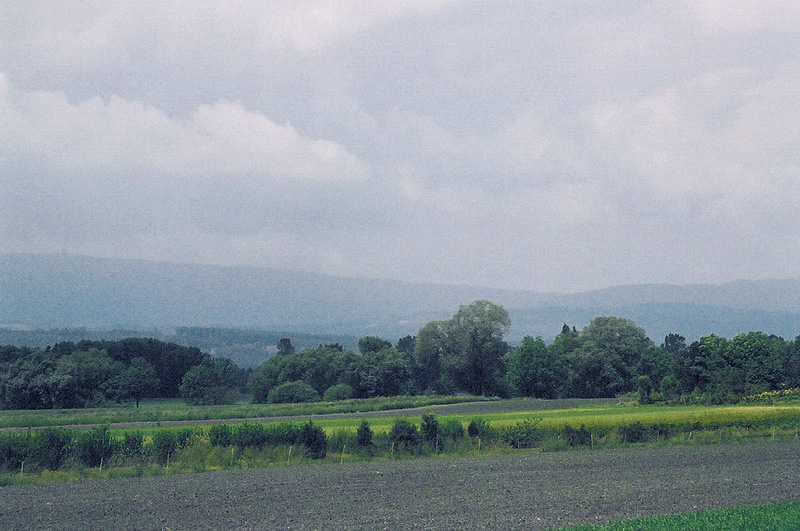 den blauen Jurahöhen im Hintergrund, sind enttäuscht weil wir in den Dörfern