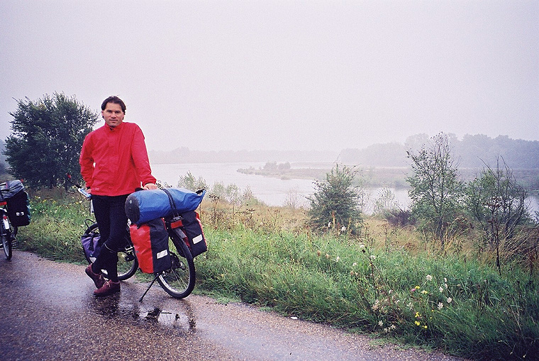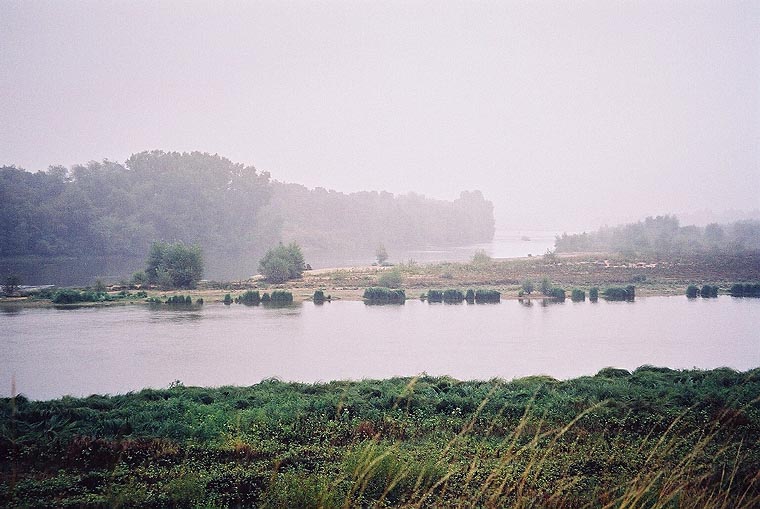Wir benutzen den Wirtschaftsweg auf der Dammkrone, es ist sehr ruhig, keine Autoverkehr plagt uns, immer wieder sind uns Ausblicke auf die Loire vergönnt. Einmal eine Anzahl schnatternder Wildgänse auf einer Sandbank, dann wieder eine Schar Rebhühner, die durch unser leises Rollen aufgeschreckt werden. Es bleibt trocken und ist warm und etwas windig und wir sind wieder guter Dinge. Nach der bisherigen Erfahrung mit dem Strassenverkehr und vor allen Dingen weil uns der gestrigen Sturz noch in den Knochen steckt, wollen wir auf die grossen Städte verzichten - Orleans, Tours, Nantes, Angers, wir werden sie umfahren, vielleicht später mal auf einer anderen Reise besichtigen.