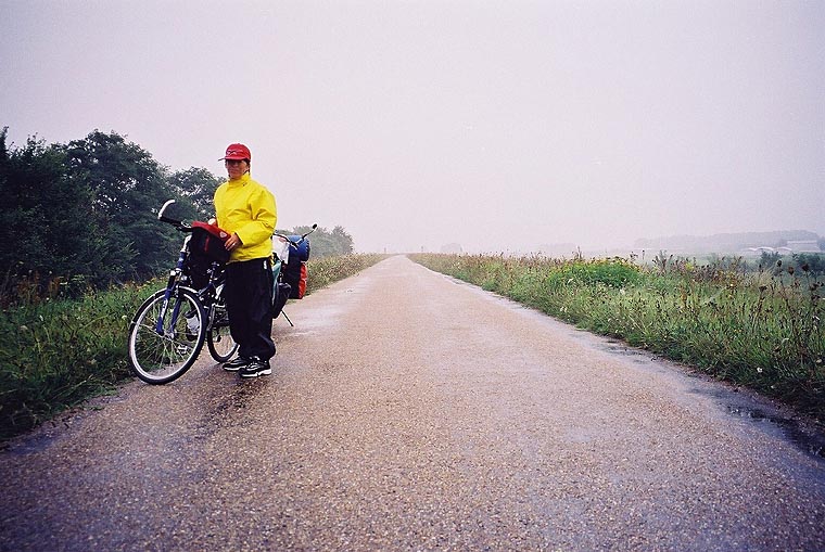 Was zeigt uns der morgendliche Blick aus dem Fenster? Pfützen! Autos mit eingeschalteten Scheibenwischern! Missmutig schauen wir uns an, verstauen unsere Ausrüstung in die Packtaschen, trübes Regenwetter schlägt halt irgendwann dann doch auf die Stimmung. Nach dem Frühstück ist es aber trocken und ich möchte fast meinen, dass die Bewölkung eher nach Nebel als nach Regenwolken aussieht, irgendwie ist die Struktur anders. Im Augenblick jedenfalls bleiben Regenhose, Handschuhe und Gamaschen in der Packtasche