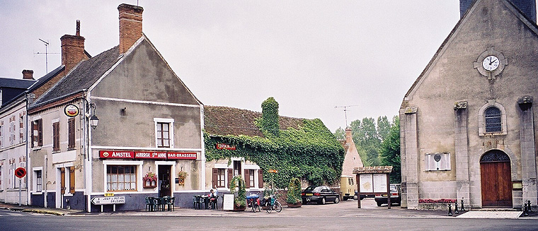 Es folgen sechs Kilometer auf kerzengerader, aber ruhiger Landstrasse bevor bei Jouy-le-Potier die schönste Passage des Tages beginnt: etwas zehn Kilometer kleiner Asphaltweg durch einen verwunschenen Mischwald. Mit Moos-, Farn- und Grasböden, Eichen, Buchen, Birken, Kiefern und anderen Laub- und Nadelhölzern. Die Sonne kommt durch und das Spiel von Licht und Schatten tut ein Übriges um diesen Abschnitt zu einem zauberhaften Erlebnis zu machen. Bei Ligny-le-Ribault gibt's einen Kaffee am Dorfplatz, dann begleitet uns auf der Strecke nach La Ferté-St.-Cyr ein Rennradfahrer, fährt langsam in zweiter Reihe neben uns her, um mit uns, resp. mit Margit zu plaudern - zuhause tun das die Rennradler irgendwie nicht so gerne…