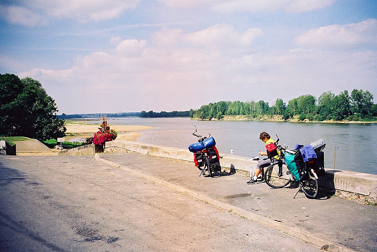 und milde Temperaturen, eine sanfte Landschaft, unser eigenes Tempo zurückgeschraubt. Das "klassische" Loiretal ist nun durchfahren, kein weltbekanntes Schloss mehr am Wegesrand, die Ortsbilder wechseln von weiss zu grau: Granit ist hier das vorherrschende Baumaterial. Auch die Platanen- und Pappelalleen an den Uferpromenaden sind verschwunden. Bei Ancenis queren wir das letzte Mal den Fluss und verabschieden uns von der Loire, der Anmutigen. |