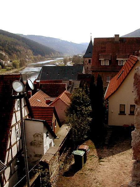 man das Panorama des Städtchens Hirschhorn vor sich. Über der
