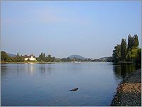 Als ich über den Rhein setze, mit der glitzernden Gegenlichtstimmung zur Linken und dem Blau des Flusses und der Hügel auf der anderen Seite, den Anstieg bis zum Bahnhof hinaufklettere, den Radwegweisern des Seeradweges folge und auf halber Höhe abwechselnd durch Wohngebiete und freies Feld gleite, leckt sich die Sonne durch einige Nebelfelder und der Wind frischt auf - man wird wohl bald die ersten weissen Segel sehen. Ich bin so gut wie alleine auf der Fahrt entlang des Untersees. Das ist mir ganz recht so, denn hier rollt es gut, wenn man nicht durch nebeneinander fahrende Radler ausgebremst wird, und ausserdem mag ich diese Strecke hier recht gerne. Oft fährt man direkt am Seeufer entlang oder kommt durch sehenswerte Städtchen wie Steckborn oder Ermatingen. In Kreuzlingen "gönne" ich mir einen Umweg, weil ich die Beschilderung übersehe, bin dann jedoch relativ schnell wieder auf Spur, die Richtung ist ja klar. Und jetzt wird's recht eintönig. Die Trasse ist gut ausgebaut, weitestgehend asphaltiert, aber kerzengerade und abseits der grossen Wasserfläche. Immerhin läuft es gut, es ist ja fast eben. Mit der Zeit nimmt nun der Verkehr zu, je mehr der Vormittag voranschreitet, desto mehr Radler sind unterwegs. Aber es ist immer noch in Ordnung. Visuell interessant wird es erst wieder so ab Romanshorn, wo man an Hafen und Seepromenade entlang fährt, ebenso in Arbon, Horn, Rohrschach. Mein Hotel in Rohrschacherberg ist bald gefunden, ich kenne den Weg ja noch vom letzten Jahr. Um die Mittagszeit geniesse ich schon ein Erdbeereis im Garten, mache Siesta, und als ich später im hauseigenen Solbad plantsche, fühle ich mich phantastisch, irgendwie so...äh..."Vagabund Deluxe"... Später bekomme ich noch die Schlusssequenz der heutigen