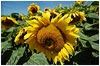 Bald darauf, als sich die Landschaft erneut ändert, sind wir wieder fast für uns allein auf weiter Flur. Mit den Sonnenblumenfeldern. Ein bisschen später dann nur mehr Getreideanbau, soweit das Auge reicht. Wir sind auf dem Plateau de Langres angekommen. Die Sonne sticht hernieder und die Luft vibriert und ist aufgeheizt, sodass die Bussarde ohne einen einzigen Flügelschlag in den aufsteigenden Luftmassen segeln können. Die Streckenführung, die den ganzen Tag über fast flach zu nennen war, wird nun wieder wellig und wir schwitzen gegen Ende dieser Tagesetappe ganz schön, ehe wir zu unserem Etappenort, dem kleinen Städtchen Bèze hinabrollen können.