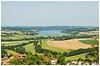 Als der Tag voranschreitet steigen auch die Temperaturen. Wir treffen auf das Flüsschen Vingeanne (das eigentlich eher ein Bach ist, aber trotzdem der Gegend hier einen Namen gibt: Pays de Vingeanne) und auf den Canal de la Marne à la Saone. Um die Mittagszeit sind wir in Villegusien. Dort gibt es einen Stausee. Hier jetzt eine Unterkunft am See finden und den Rest des Nachmittags in der Sommerhitze dösen…das wär's doch! Gerade jetzt, wo um die Mittagszeit doch eh immer der Wunsch nach Siesta aufkommt und der gleissende Mittagshimmel jede Energie aufzusaugen scheint. Pustekuchen. Einen Campingplatz gibt's sehr wohl, sogar mit einer Ferienhaussiedlung ausgestattet. Aber irgendwie passt das nicht. Es ist niemand an der Rezeption, um bezüglich einer Unterkunft in einem der Chalets zu informieren und angesichts der auf einer Schautafel angeschriebenen Preise suchen wir dann doch relativ schnell das Weite.