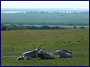 glitzert im Morgenlicht und gleich hinter der Grenze dösen Rinder
