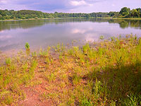 den aufgewühlten See und an dessen Ufer, keine zweihundert Meter