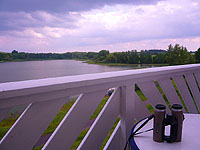Es soll aber anders kommen. Wir umrunden die Lahnberge und die Landschaft wir allmählich weiter und leicht wellig. Schräg vor uns liegt ein Kegelberg, auf dessen Kuppe eine Festung zu sehen ist. Das ist Amöneburg. Lange ist diese markante Erhebung in unserem Blickfeld, während wir an Kirchhain vorbeiradeln und daraufhin Stadtallendorf anpeilen, wo mal wieder eine kleine Pause angesagt ist. Heute läuft es wieder mal so richtig gut und wir freuen uns über die Routenführung. Diese eher unbekannteren Radfernwege haben es - im positiven Sinne -in sich. Grad in Hessen sind mir bisher immer gut ausgeschilderte und befahrbare Wege begegnet. Dazu kommt noch, dass sie deutlich weniger frequentiert sind als die üblichen Klassiker. Nach Stadtallendorf radeln wir länger durch bewaldetes Gebiet, überwinden noch eine Hügelkette und überqueren die Wasserscheide Rhein-Donau, bevor wir etwas später das Tal der Antrift entlang fahren. Wenn man es nicht selber erlebt hätte, würde man die folgende Episode nicht für möglich halten. Jeder andere würde es als Effekthascherei bezeichnen, als billigen dramaturgischen Trick, und wenn jemand das hier nicht glauben will, so sei es ihm anheim gestellt. Und doch verhält es sich so: Um die Mittagszeit verdichten sich nämlich die Wolken ringsum und es liegt eindeutig ein Gewitter oder zumindest Regen in der Luft. Das erste Mal auf dieser Reise ziehen wir uns die Regensachen über und kurz darauf bricht auch schon ein sintflutartiger Platzregen los. Als das Spektakel beginnt, sind wir in der Nähe der Staumauer, die das Flüsschen Antrift zu einem See anstaut. Jetzt etwas zum Unterstellen, eine Gaststätte, vielleicht sogar |