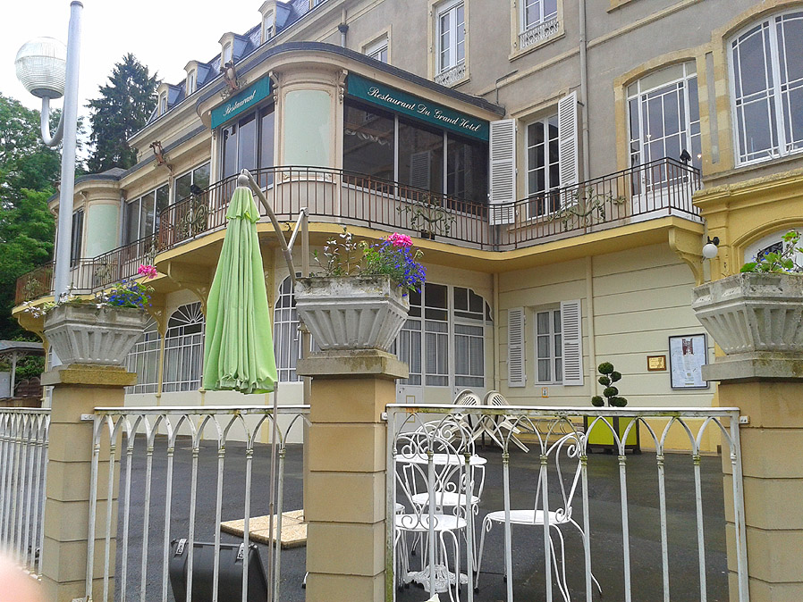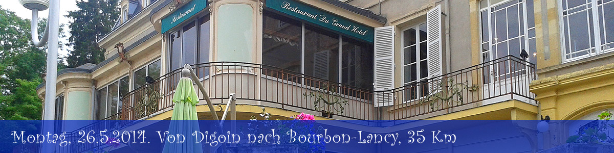 Leute, die beim Bäcker ihr Baguette holen, vor dem Geldautomaten Schlange stehen oder Lieferanten, die ihren Lieferwagen ausladen - hier muss der Motor einfach weiterlaufen, keine Ahnung warum. Diesbezüglich beobachten wir heute ein besonders schönes Beispiel fremdländischer Sitten und Gebräuche: Ein städtischer Angestellter muss die Meilensteine entlang des Kanals von Gras, Gestrüpp und anderem Bewuchs befreien und benutzt dazu so ein Mähmaschinchen mit Verbrennungsmotor. Er fährt dazu den Treidelpfad entlang, hält an, steigt aus, und während der Diesel seines Wagens fröhlich weiter nagelt, befreit er den zugewachsenen Meilenstein vom ihm umgebenden Grün. Damit - er braucht schon eine Weile - fertig geworden, wirft er das Mähgerät auf die Ladefläche (wo dieses nun weiter tuckert) und rollt weiter bis zum nächsten Stein, wo sich alles wiederholt. Kopfschütteln unsererseits. In Diou wechseln wir die Flussseite und stehen eine Stunde später vor dem Grand Hotel, gerade rechtzeitig zum Mittagessen. Hier wartet Kurbetriebs-Charme alter Schule auf den Gast. Nebenan gibt's ein Thermalbad, einen weitläufigen Park mit grossen Bäumen, alles ganz wie es soll. Wir buchen Vollpension und schlemmen in ideal leichter und raffinierter Französischer Küche. Wow! So macht Gastronomie Spass! Dass später beim Abendessen dann in der Küche die Alarmanlage angeht und das Personal minutenlang hilflos versucht, den ohrenbetäubenden Lärm abzustellen, trägt eher zu Erheiterung bei. Ausserdem schmeisst hier eine junge Bedienung mit Bravour und Finesse den ganzen Laden. Chapeau! Als ich am nächsten Tag meine Rechnung begleiche, staune ich ob der verhältnismässig klein ausfallenden Rechnung nicht schlecht. |