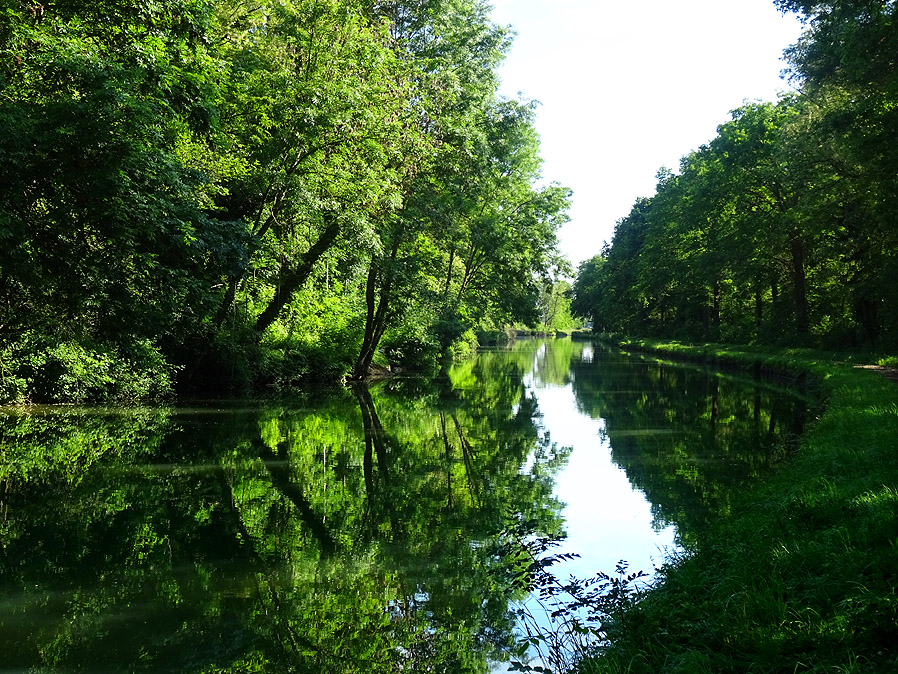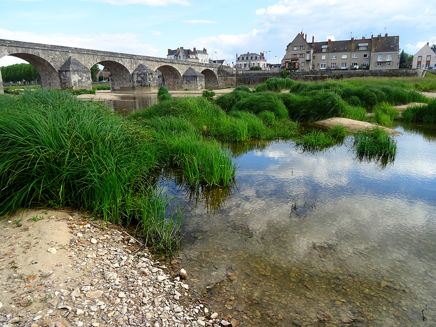 Wir blicken auf eine Etappe zurück, die wieder mit strahlend blauem Himmel beginnt. Zuerst gleiten wir vorsichtig inmitten all der zur Arbeit fahrenden Automobilisten auf der grossen D 955 hinunter in den Ort St. Satur, wo wir zuerst einen Supermarkt aufsuchen, um unseren Vorrat an Lebensmitteln und Trinkwasser wieder aufzufüllen. Dann folgen wir wieder den Radwegweisern und tun gut daran. Wie gestern schon hat man vor uns ein Asphaltband entrollt, auf dem sich prima radeln lässt, zumal an diesem sonnigen Frühsommermorgen. |
