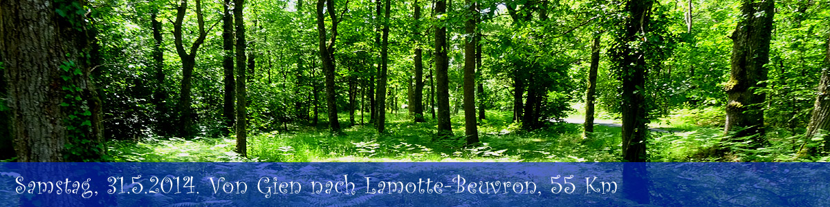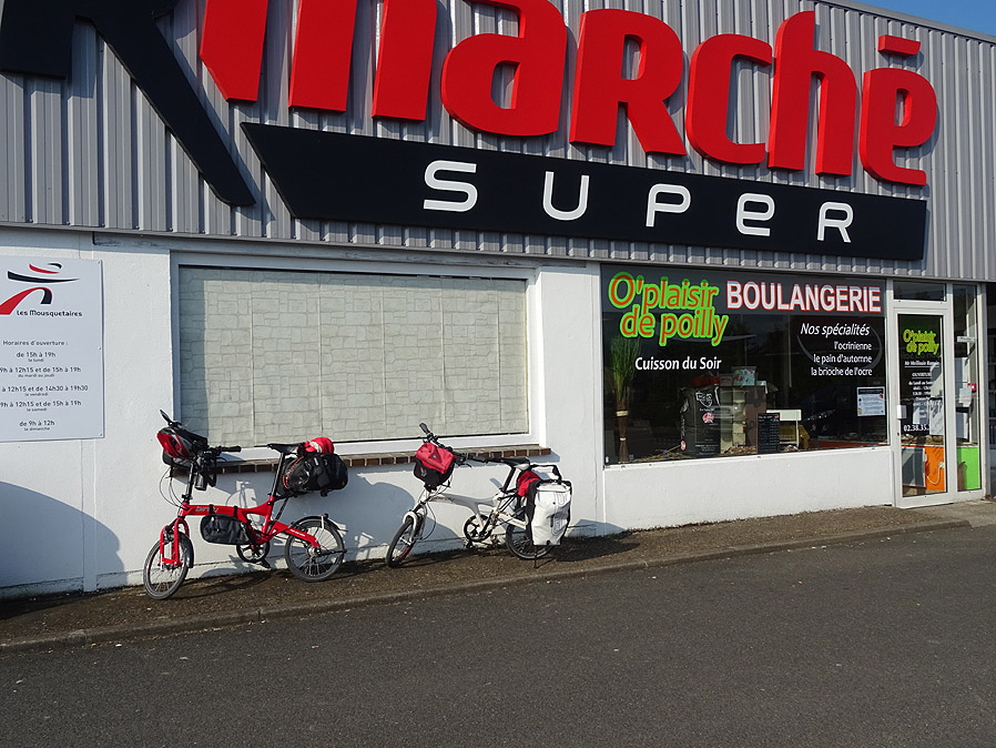 Aber eben, es gibt ja noch Plan B. Dieser sieht einen Trip quer durch das Wald- und Seengebiet der Sologne vor, einem Landstrich südlich von Orleans. Ein Städtchen in der richtigen Richtung und in Schlagdistanz ist Lamotte-Beuvron. Dort ist die Lage nicht so angespannt und an freien Hotelbetten herrscht kein Mangel. So stellt das Schicksal eben seine Weichen, und sogar der Wind ist mit uns und schiebt uns heute durch die Gegend. An diesem himmelblau sonnigen Morgen rollen wir aus Gien hinaus und sagen der Loire erstmal Adieu - wir werden uns erst in ein paar Tagen wiedersehen. Wir sind früh dran und müssen deswegen im nächsten Ort, Poilly-lez-Gien, erstmal noch ein paar Minuten auf das Öffnen des Supermarktes warten. Das tun wir gerne, denn man weiss nicht, ob man sich in den paar Ortschaften, durch die wir heute kommen werden, überhaupt verproviantieren kann. |
