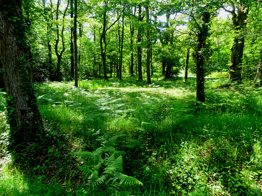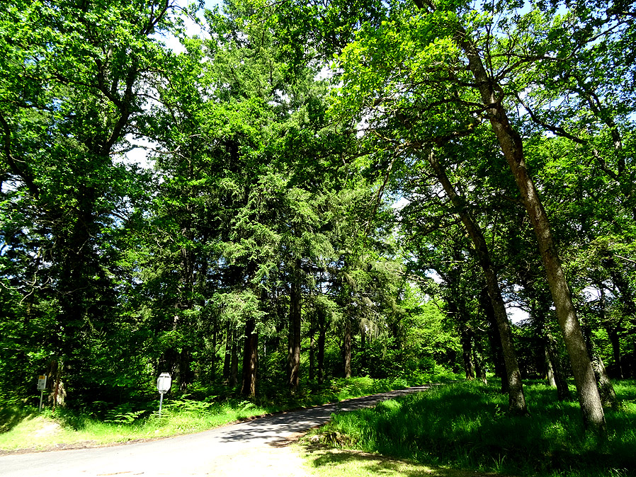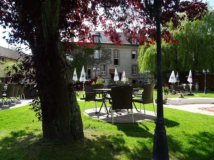 Dann geht's los. Auf kleinen Strassen radeln wir schnurstracks nach Westen. Bocage-Landschaft mit Wiesen, Hecken und Baumgruppen, und dann Wald in allen Formen, von lichtdurchflutet bis hin zum dichten Urwald. Was muss es hier Wild geben! Schönes ruhiges und entspanntes Radeln ist das. Unsere ständigen Begleiter der letzten Tage, die weissen Charolais-Rinder, sind verschwunden. Dafür fetzt irgendwo ein Iltis oder Marder vor uns quer über die Strasse, das ein oder andere Reh grast am Waldesrand oder man hört einen Fasan. Erst als uns in Lamotte-Beuvron die "Zivilsation" wieder hat, werden wir auch mit dem Autoverkehr konfrontiert. Und zwar in Form einer grossen Nationalstrasse, die hier in Nord-Südrichtung verläuft. Unser Hotel liegt zwar an dieser Strasse, doch alles "Privatleben" findet auf der der Strasse abgewandten Seite statt. So wartet ein grosszügiger Garten auf uns, in dem sich der Rest des Tages gut verbringen lässt. Wenn man den ganzen Vormittag durch die (relative) Wildnis geradelt ist, erfreut man sich so richtig an einer gepflegten grünen Rasendecke. Zuhause ist es gerade umgekehrt... Das Abendessen hier ist eine Wucht. Ins Tagebuch hab ich nur "sehr