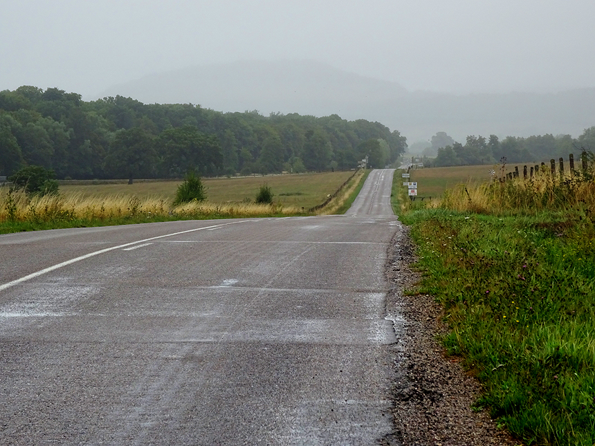 Well I'm running down the road trying to loosen my load Take it easy, take it easy, don't let the sound of your own wheels drive you crazy... "Take it easy" ist genau unser Motto, während wir durch den Regen nach Norden rollen, über Lure und Luxeuil-les-Bains weiter bis ins Tal der Meuse. Welches wir in etwa bei Neufchâteau erreichen. Dieses Städtchen wirkt trotz des Feiertages geschäftig, und trotz einiger aufgegebener Läden scheint die Geschäftswelt hier, wie gestern schon in Altkirch, auch nicht direkt dem Untergang geweiht zu sein. |