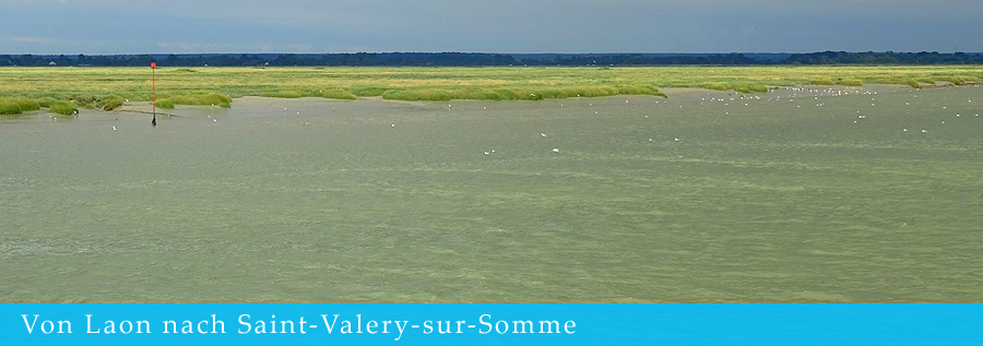 Doch alles der Reihe nach. Auf der heutigen Etappe gab es keine kleinen Strassen und kein Sightseeing. Sogar Laons Altstadt mit der Kathedrale und die imposante Kirche in Noyon wurden ignoriert. Denn heute wollten wir Strecke machen, ans Meer beziehungsweise zu dieser Bucht hier gelangen. So packten wir uns auf die Schnellstrasse, liessen Amiens und Abbéville links oder rechts liegen, und waren um die Mittagszeit schon in Saint-Valery-sur-Somme, wo wir ein paar Tage bleiben wollten. Als wir ankommen, ist der kleine Ort so dermassen überlaufen, dass ich nicht mal einen Parkplatz bekomme. |