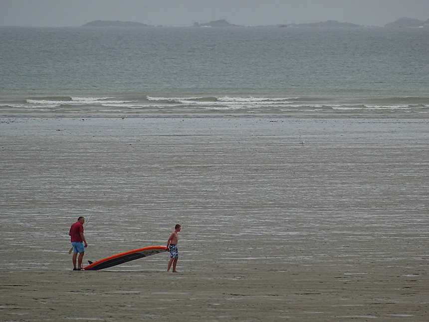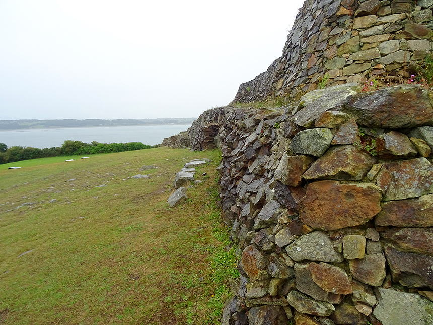| Regenwetter. Was sonst. Brauche ich doch eigentlich gar nicht mehr zu schreiben, oder? Wir checken aus und lassen uns weiter gen Westen treiben. Zuerst wollen wir dem Cairn von Barnenez einen Besuch abstatten, einer Grabstätte aus prähistorischer Zeit. Wir rollen auf kleinen Landstrassen durch die Regenwelt, finden einen sorgsam aufgeschichteten Steinhaufen grossen Umfangs samt Schautafeln vor, eingezäunt und nur auf einem kleinen Weg, der rein zufällig entlang der Kassentheke verläuft, zu besichtigen. Der Kommentar eines verärgerten Besuchers im ausliegenden Gästebuch liest sich sinngemäss folgendermassen: "Was für ein Beschiss! Man zahlt einen horrenden Eintrittspreis für einen Steinhaufen, ohne dass man die eigentlichen Grabkammern im Inneren besichtigen kann." Tja, sehen wir einerseits genauso, andererseits würde man das hier ohne finanziellen Zustupf seitens der Touristen auch nicht erhalten können oder wollen. |
