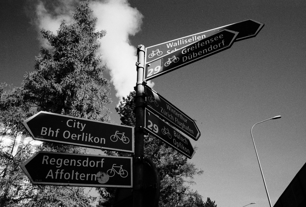 dem Flüsschen Glatt entlang aus der Stadt, am Flughafen vorbei, mit der