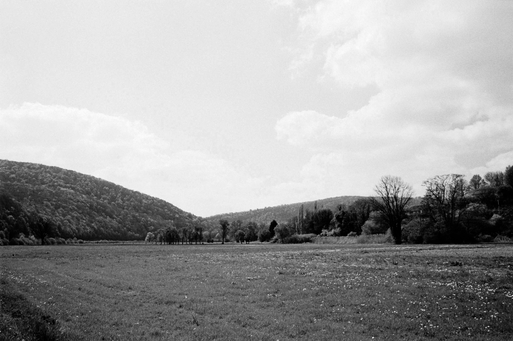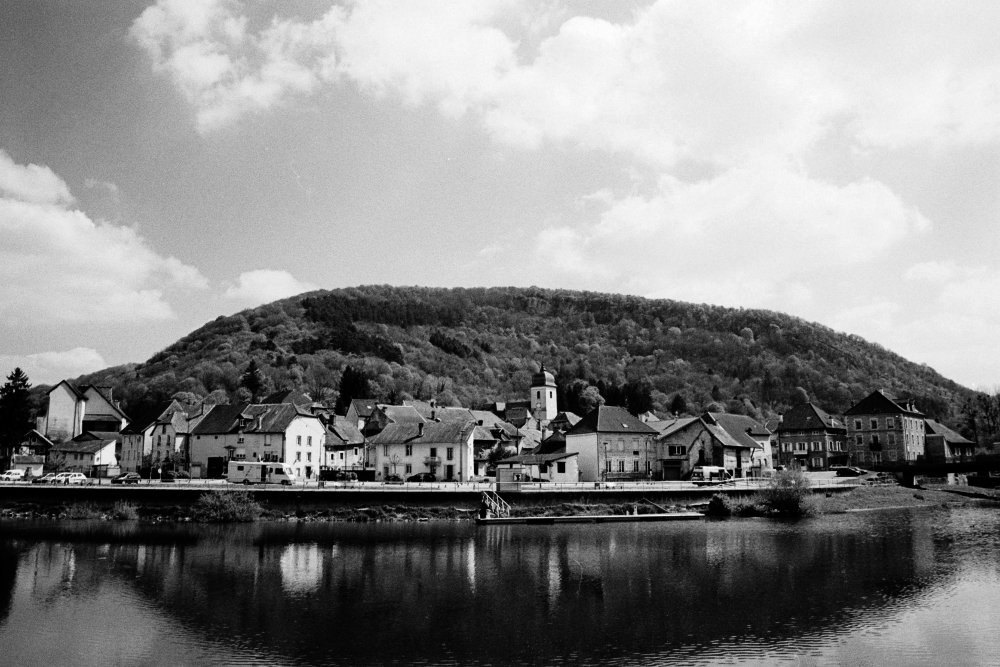 geworden, bewaldete Hügel wachsen links und rechts am Talrand empor. L'Isle-sur-le-Doubs. Hektischer