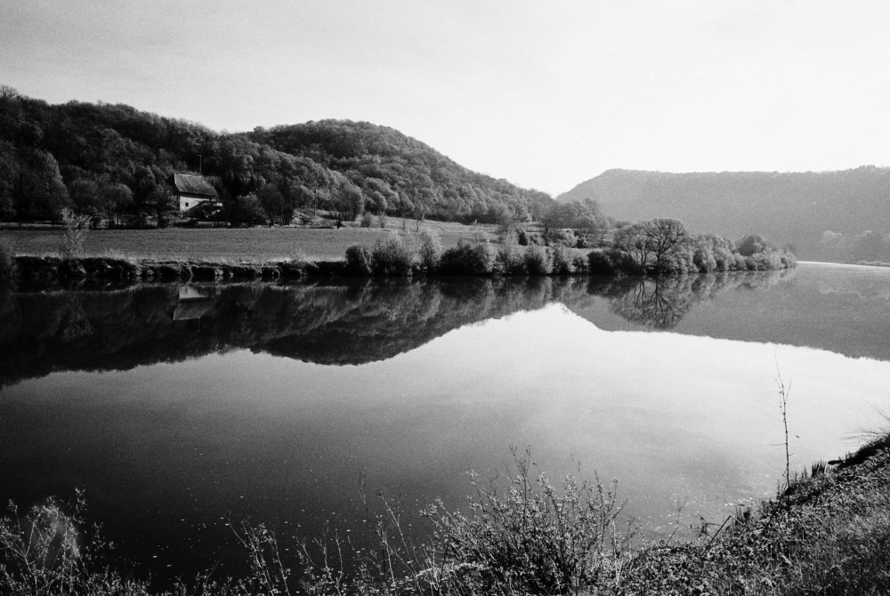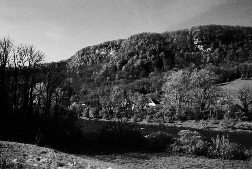 wildromantisch. Jurafelsen, Mischwald, hinter jeder Flussbiegung eine