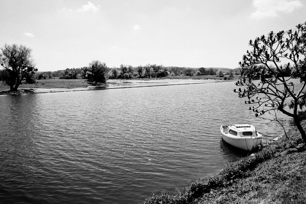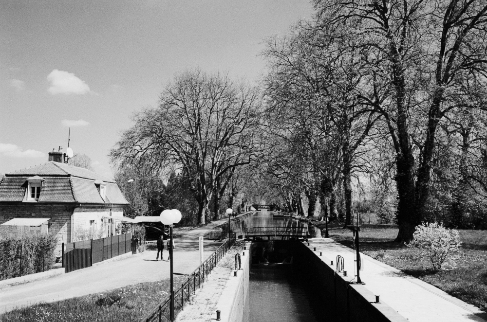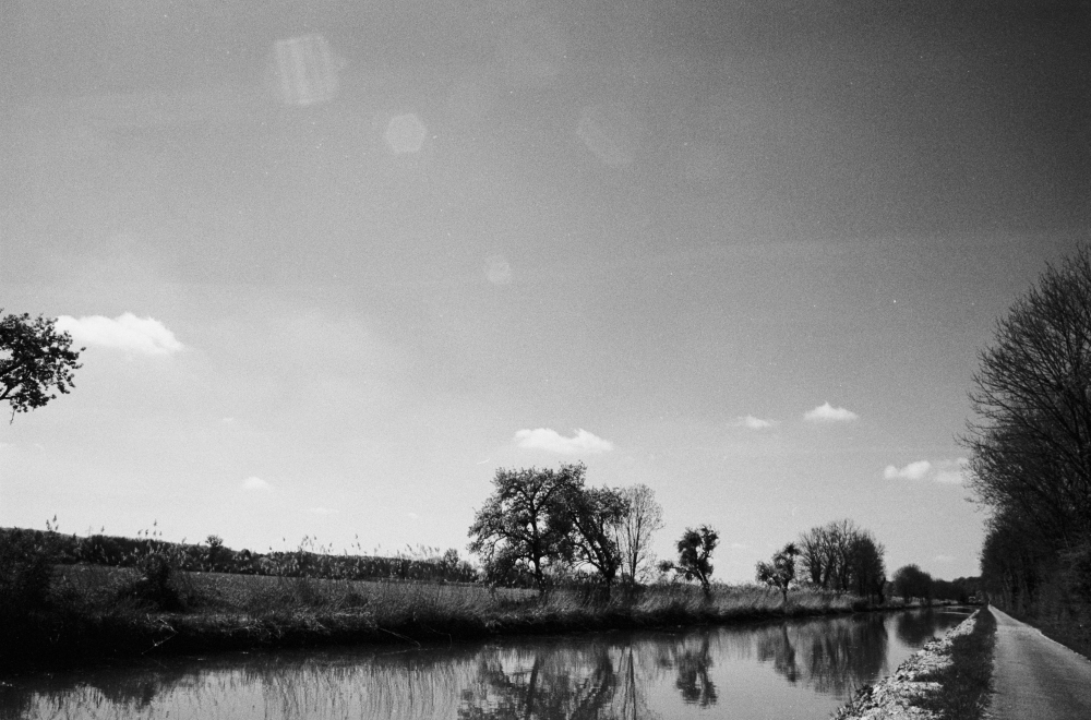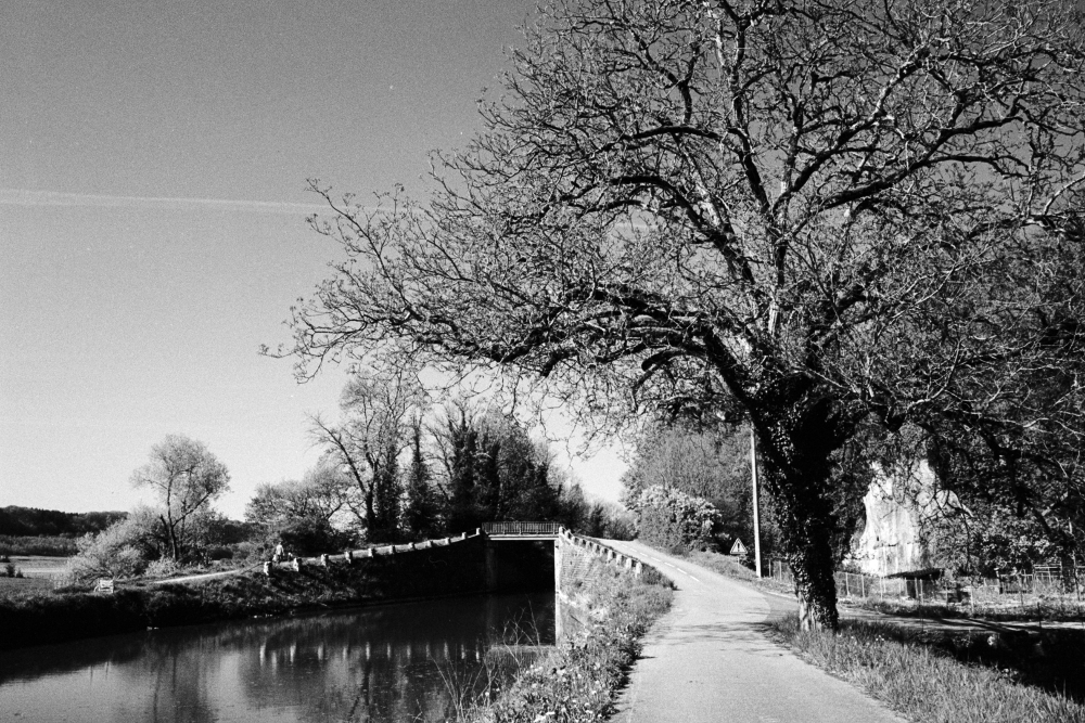Velowetter. Gut zwanzig Kilometer begleiten uns heute noch die bewaldeten Hügel, dann öffnet sich das Tal allmählich. Bei Thorais müssen wir ausnahmsweise etwas klettern und durch einen Teil der Ortschaft radeln, die oben auf einem kleinen Felsvorsprung erbaut ist, doch schliesslich liegt ein weites Tal vor uns. Gegenwind und Sonnenschein, und jetzt lange und oft kerzengerade am Kanal entlang, das macht dann doch etwas müde. |