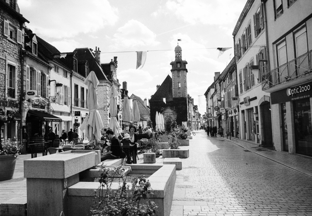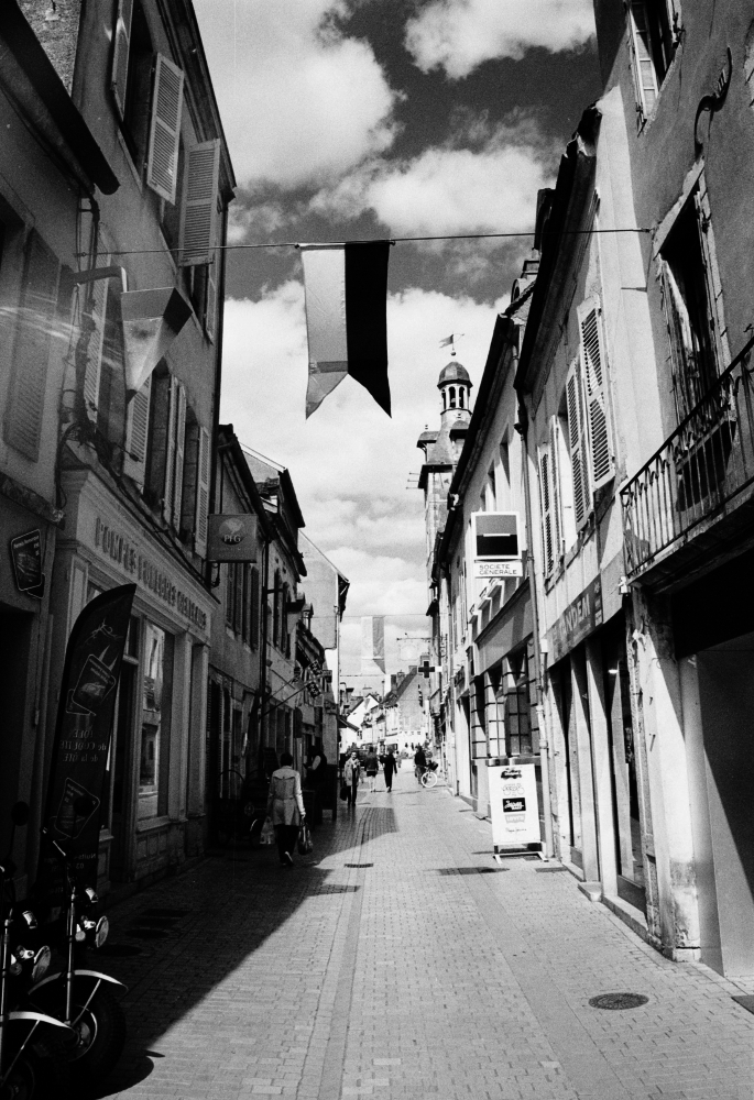 Vorortsiedlung von Nuit-Saint-Georges überholt mich jemand mit Affenzahn