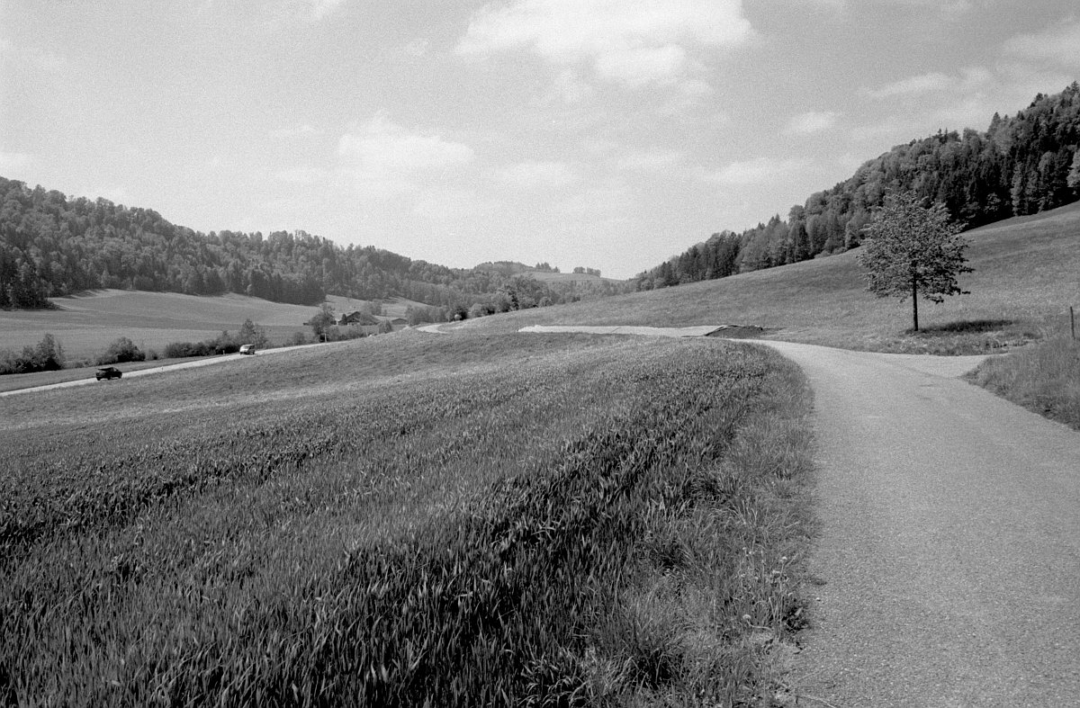 Tage lang folgen. Der Frühling ist in vollem Gange, die Kastanien zeigen ihre Kerzen, die Rapsfelder ihre gelbe Pracht, und soviele Maikäfer wie in diesem Jahr haben wir schon lange nicht mehr gesehen. Leider waltet nicht nur Baldur, der Frühlingsgott, seines Amtes, nein, auch Zephyr frönt seiner Leidenschaft und sendet uns kräftigen Gegenwind. Über hügeliges Terrain werden wir bis zum Tösstal geleitet, folgen diesem dann flussaufwärts, biegen bei Turbenthal in das Tal des Chatzenbachs. Am Bichelsee vorbei und durch Balterswil und Sirnach gelangen wir bis zu unserem Etappenort Wil. Wil entpuppt sich als überraschend sehenswertes Städtchen mit einer modernen Fussgängerzone, einer historischen Altstadt mit gemütlichen Kneipen, und einem Naherholungsgebiet in Form des Stadtweiers, von dessen Ufern aus man einen Blick über Altstadtfassaden hat. Da sitzt man gerne nach dem Abendessen noch eine Weile in der Fussgängerzone vor einer Kneipe und beobachtet das Treiben ringsum. |
