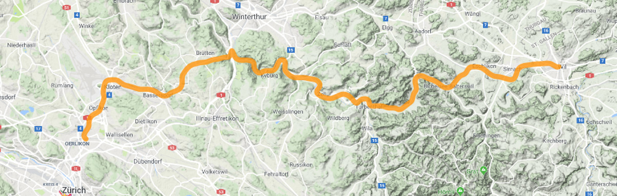 Steuer eines solchen Gefährtes ist man anscheinend gleich sehr bedeutend. Dazu gesellen sich noch andere Geräusche: Eine Gruppe junger, nicht mehr ganz nüchterner Damen zelebriert, durchaus nicht dezent, ihren Junggesellinnenabschied und zieht von Lokal zu Lokal. Und auch dazu fällt mir ein Zitat ein, dass ich Martin Luther (wobei man nicht mit Sicherheit feststellen kann, ob er wirklich der Urheber dieses Sinnspruchs ist, sagt jedenfalls das Interweb) so nicht zugetraut hätte: Wer nicht liebt Wein, Weib, Gesang, der bleibt ein Narr sein Leben lang... Nun denn, wir sind halt in einer Stadt, nämlich im Wil, und nicht in der Wildnis, entscheiden uns für die stickige Luft und schlafen ganz gut. Und lassen eine durchaus angenehme erste Etappe noch mal Revue passieren: |