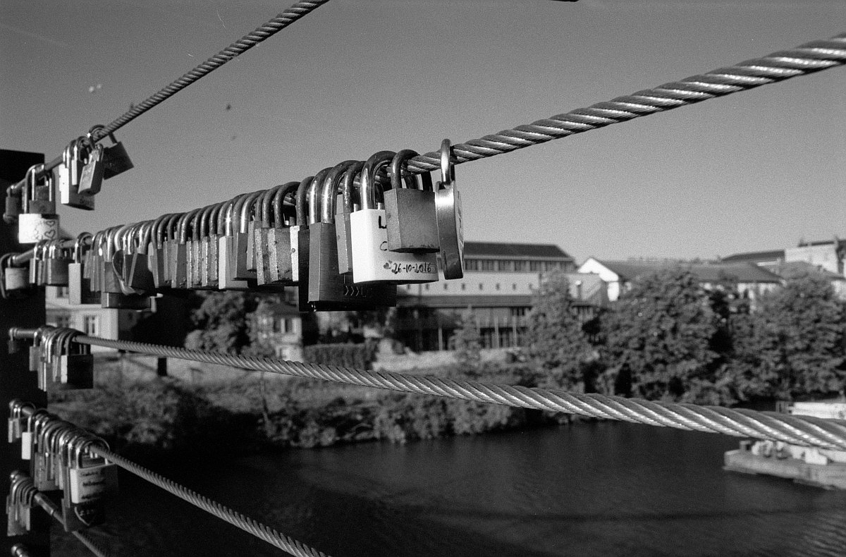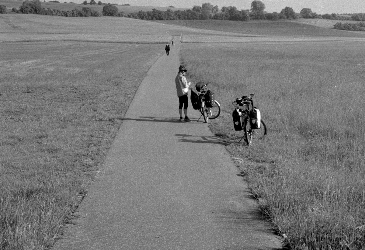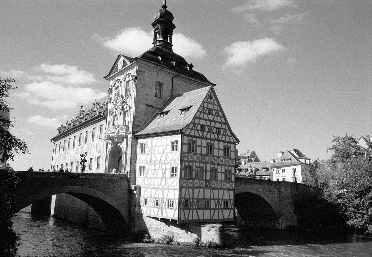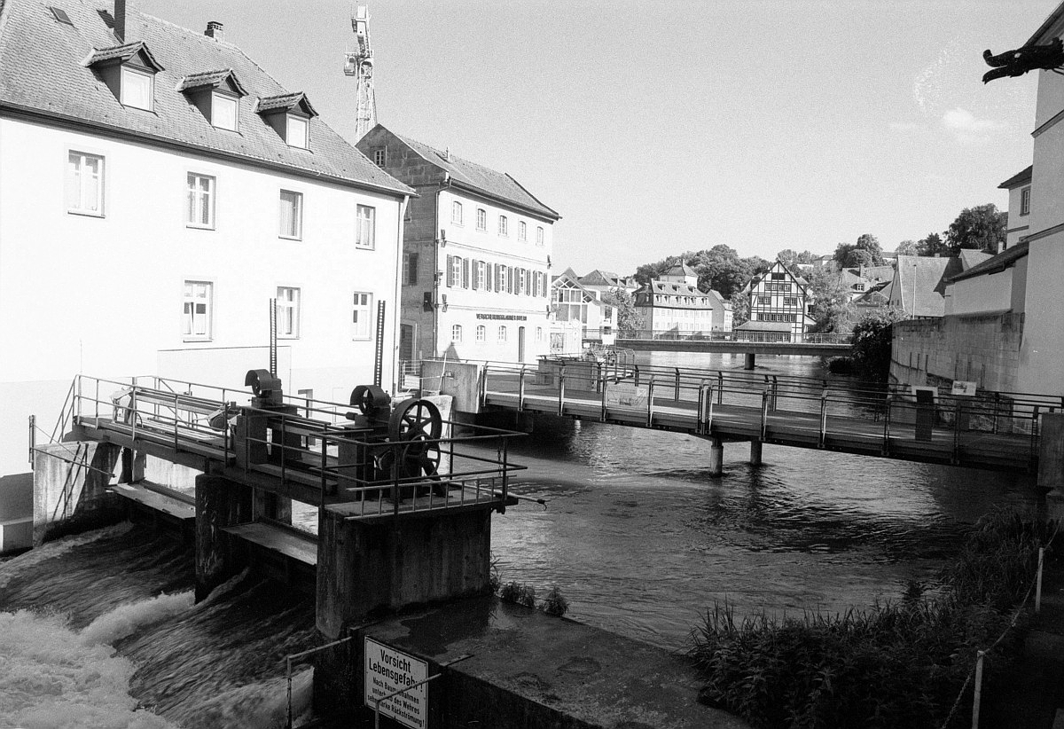 durch. Dass man müde ist, merkt man auch an der schwindenden Konzentration. Als ich vor unserem Hotel meine Lenkertasche vom Rad nehme, fällt mir prompt meine antike Minolta auf den Boden und handelt sich zwei unschöne Dellen ein. Immerhin funktioniert sie noch. Natürlich wandeln wir heute nach der Siesta noch durch Bambergs Gassen und Strässchen, die Stadt ist schliesslich ein Bijoux. Im Café Müller essen wir nicht nur hervorragend, eine Zwei-Mann-Band baut auch grad ihr Instrumentarium auf und intoniert zum Soundcheck "The Year of the Cat" von Al Stewart. Warum nur werden heute keine so geheimnisvoll-schönen Songs mehr geschrieben? Eine Weile später kommen wir noch in den Genuss einiger Beatles-Songs, die eine Band auf dem Weinfest in der Innenstadt spielt. |