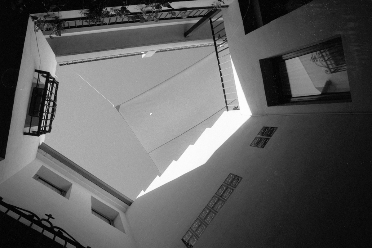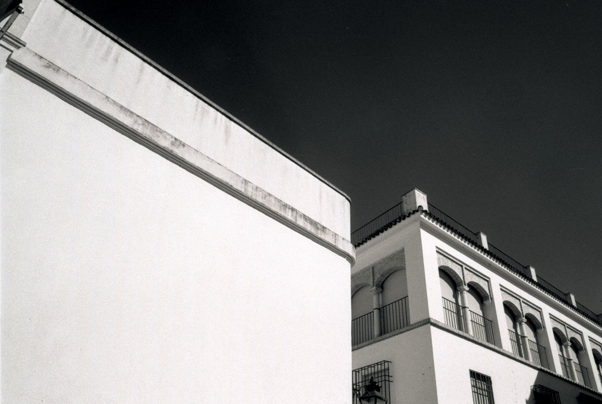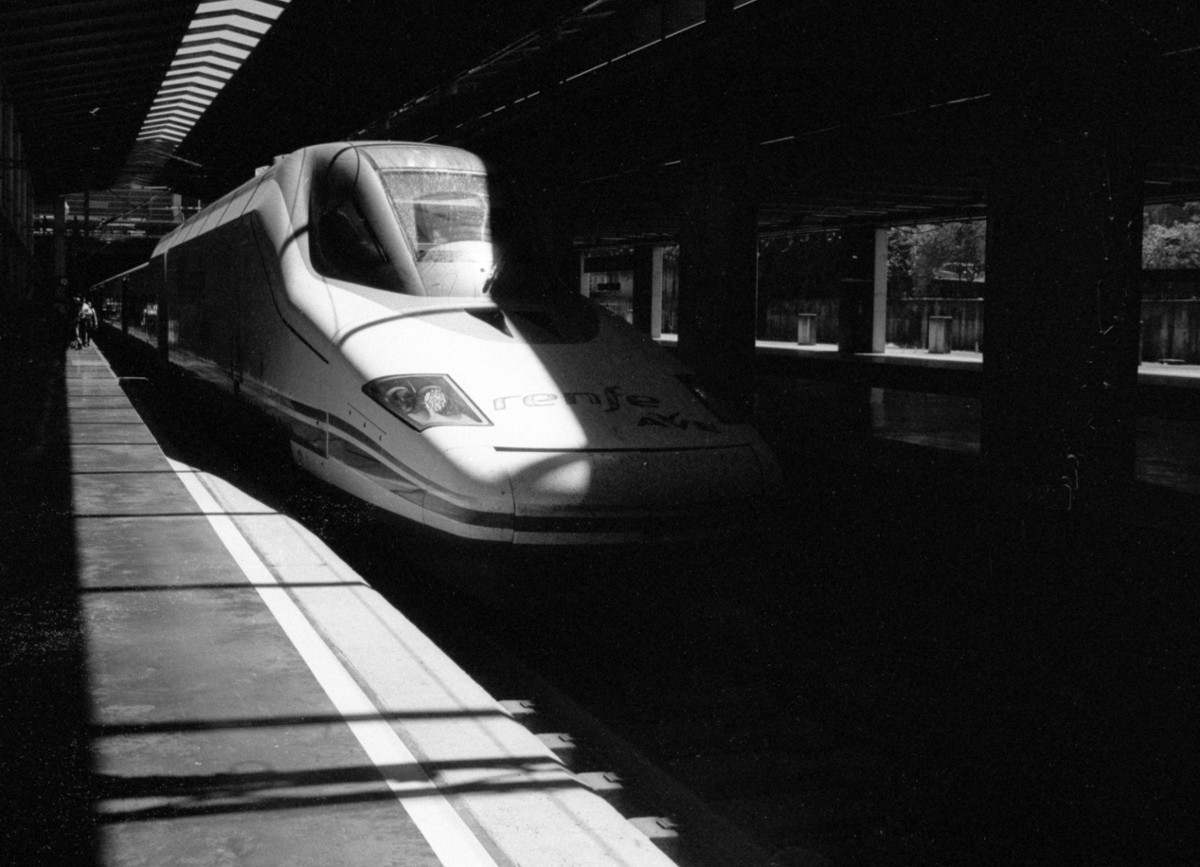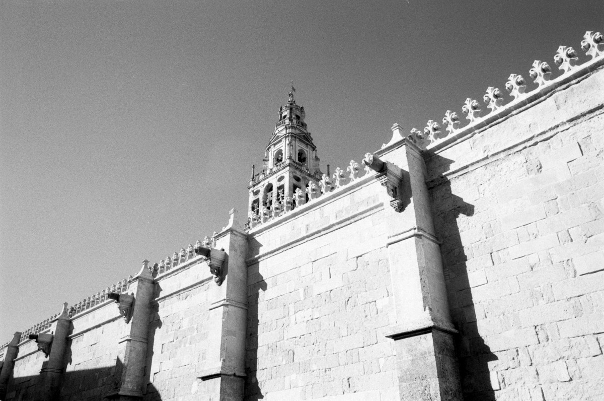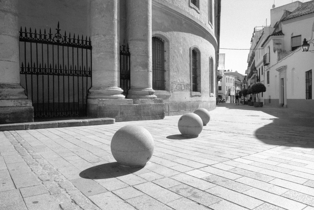 irgendwann geht einem dann doch auch mal die Puste aus. Wir müssen früh los, um unseren Zug nach Córdoba zu erwischen, zu früh für ein Frühstück im Hotel. So nehmen wir dieses in der Filiale einer bekannten amerikanischen Fast Food-Kette zu uns. Wie heisst es so schön? Man gönnt sich ja sonst nichts? Gleich darauf zwei Aha-Effekte. Ein positives und ein zwiespältiges. Um zu unserem Schnellzug zu gelangen, muss man durch eine Sicherheitsschleuse hindurch, so wie man es von Flughäfen her kennt. Das Gepäck wird durchleuchtet. Auf das war ich natürlich nicht vorbereitet und schlagartig realisiere ich, dass meine Schwarzweissfilme ja völlig ungeschützt sind. Ob die mit der Strahlung klar kommen oder ob ich die Fotos vergessen kann? Das war das zwiespältige Erlebnis. Um nicht am Ende der Reise schlimmstenfalls ganz ohne Fotos dazustehen, beschliesse ich, parallel zur analogen Fotokamera, in diesem Fall meine abgeschabte Konica Autoreflex T4, auch mit dem Mobiltelefon zu fotografieren. Da dabei auch Bilder entstanden sind, die mir gefallen, werde ich zu jedem Reisetag eine Seite mit den farbigen Bildern erstellen. Doch wie man sieht, haben die Schwarzweissfilme keinen Schaden genommen. Das positive Erlebnis ist der Hochgeschwindigkeitszug, mit dem wir in den Süden rauschen: Die Sitze in schwarzem Leder gehalten, viel Beinfreiheit, alles sehr modern und sauber. Da staunt man nicht schlecht. Der Wetterbericht, den wir gestern noch mitbekommen haben, hat uns auf hohe Temperaturen in Andalusien vorbereitet. Ausgerechnet Córdoba ist der heisseste Ort. Von neununddreissig Grad ist die Rede. Und wirklich: Je weiter wir mit dem Zug nach Süden vorankommen, desto höher klettert die Temperaturanzeige auf dem Display im Waggon, das die Aussentemperatur anzeigt. Bald sind wir jenseits der 30 Grad-Grenze. Und die Geschwindigkeit des Zugs bei annähernd 300 Km/h. Eine Zugfahrt quer durch Spanien bietet vor allen Dingen eines: grossartige Landschaften! Schroffe Mittelgebirge, schier endlos weite Ebenen mit Getreideanbau, dann wieder Gegenden, die man aus Wildwestfilmen zu kennen scheint, aus Utah, Arizona oder Nevada. Grosse Ländereien, menschenleer wirkend, manchmal mit einsam liegenden Gehöften. Ortschaften, Städte, von einer Burg oder einer grossen Kirche überragt. Je weiter wir nach Süden kommen desto trockener wird es. Um die Mittagszeit läuft unser Zug im Bahnhof zu Córdoba ein und wir beziehen unser Hotelzimmer mitten in der Altstadt. Und ja, es ist heiss hier. Die Notwendigkeit einer Siesta wird einem schlagartig klar. Auch wir brechen erst in den frühen Abendstunden zu einem ersten Erkundungsgang auf. Die Hitze macht einen träge und wir laufen wie in Trance durch die weisse Stadt. In unserem Quartier ist es relativ ruhig, aber in der Nähe der Mezquita ist es - natürlich - sehr touristisch. Die Bustouristen, die wir an den nächsten beiden Tagen sehen werden, sind allerdings um diese Tageszeit schon wieder verschwunden. Die Mezquita selber ist heute geschlossen. Der Anlass für die Schliessung ist die Hochzeit eines Paares, dass es sich anscheinend leisten kann, sich hier das Jawort zu geben. Wir kommen gerade zum Défilé der Gäste, die sich alle ziemlich in Schale geworfen haben. Ausserdem sind viele Frauen in den typischen Flamencokleider unterwegs. Man weiss nicht so recht, ob die "echt" sind und Einheimischen gehören, oder ob es sich um diese Art billige Fake-Tracht für Touristen handelt, wie man das auch vom Münchner Oktoberfest her kennt. Wir statten dem Guadalquivir einen Besuch ab, betrachten die alte Römerbrücke, und landen schliesslich auf dem Plaza de las Tendillas, einem Platz, der für die ihn umgebenden Gebäude irgendwie zu klein wirkt. Und ganz später, schon auf dem Heimweg, gibt es noch einen letzten Boxenstop. Nur einen Katzensprung von unserem Hotel - wie eigentlich fast überall in der Altstadt - hat man auf der ganzen Strassenbreite Stühle und Tische aufgebaut, dort sitzt man immer noch und isst und trinkt und erfreut sich des Lebens. Wir setzen uns an einen freien Tisch und tun dasselbe. |