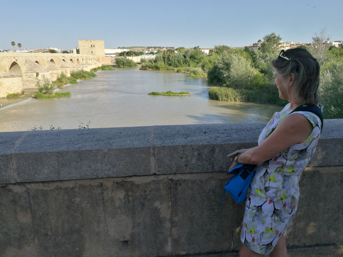 | Margrit, die alte Römerbrücke und der Fluss. |