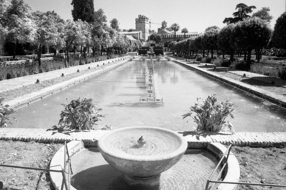bestellen. Was liegt heute an? Klar, wir wollen in die Mezquita! Nach dem Frühstück spazieren wir durch die noch ruhige Altstadt zur Moscheenkathedrale. Es ist zehn Uhr. Im Innenhof vor dem eigentlichen Eingangstor zur Mezquita drängen sich schon die Reisegruppen. Das sieht eher suboptimal für uns aus. Die Guides sind hier mit Mikrofon und um den Hals gehängten Lautsprecher ausgestattet. Eigentlich will man in einem solchen Gebäude zu dem Gedränge nicht auch noch mit babylonischem Sprachengewirr beschallt werden. Wir schauen uns die Sache mit den Besichtigungsmöglichkeiten mal an und finden heraus, dass die Mezquita morgens zwischen 8:30 und 9:30 für Reisegruppen gesperrt und nur für Einzelbesucher geöffnet ist. Der Eintritt ist für diese frei. Das sind doch schon mal gute Neuigkeiten, und wir vertagen unseren Besuch auf morgen. Wir schauen uns das Treiben hier noch ein wenig an und schlendern weiter zum Palast der Christlichen Könige, dem Alcázar de los Reyes Cristianos. Hier ist der Besucheransturm noch akzeptabel - wir zahlen Eintritt, und ein paar Minuten später wandeln wir unter Orangenbäumen dahin. An Orangen herrscht hier wirklich kein Mangel, was uns Nordlichtern wie ein unerhörter Luxus vorkommt. Die Gartenanlagen hier gehören zu den schönsten, die wir gesehen haben. Und alles ist wunderbar gepflegt. Mir kommt die heruntergekommene Parkanlage von Sanssouci in den Sinn, die sich auf unserer damaligen Radreise so ganz anders präsentierte. Jedenfalls gefällt es uns hier. Es ist Mittag geworden, natürlich heiss, und wir suchen unser Hotelzimmer für die obligatorische Mittagsruhe auf. Am späten Nachmittag sind wir dann wieder auf Achse, lassen uns durch die Altstadt treiben und hören den Strassenmusikern auf der alten Brücke zu. Was spielen die? Aktuelle Popsongs, auf Flamenco umfrisiert... |