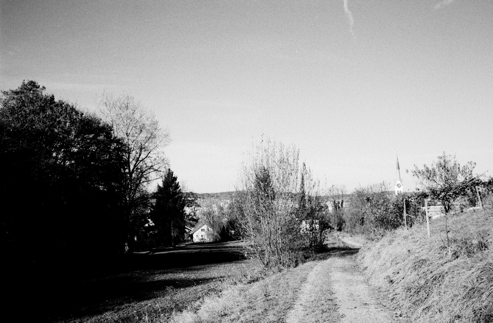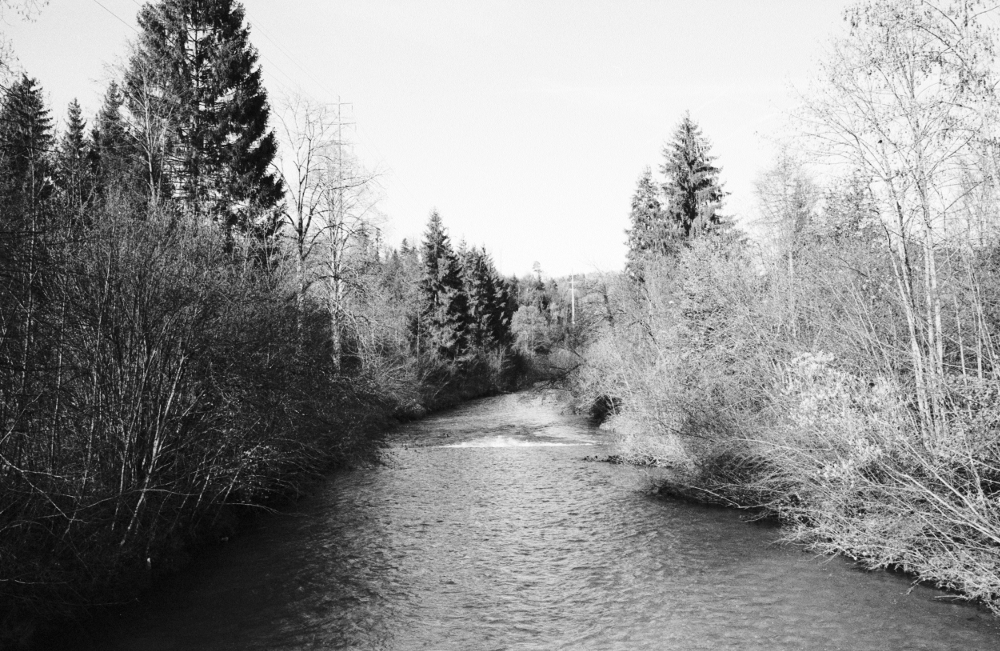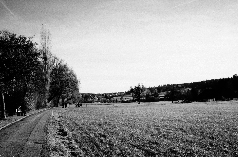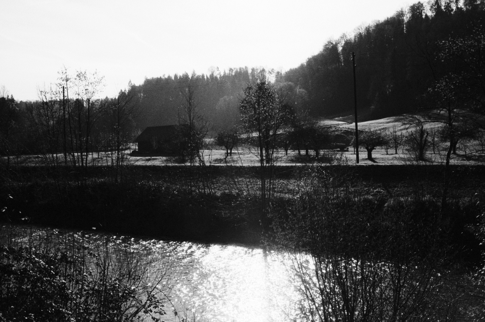 Bahnhof ab. Die Töss begleitet uns heute, wir laufen ihr Tal entlang. Die Sonne scheint uns mal ins Gesicht, mal wärmt sie uns den Rücken, je nach Flussmäander. In den Schattenpassagen ist es jedoch schon empfindlich kalt, ein Vorgeschmack auf die nächsten Wochen und Monate. Das Tösstal darf man sich nur ansatzweise romantisch oder idyllisch vorstellen. Der Fluss wurde - natürlich - begradigt und in ein Korsett gezwängt und windet sich in langen Schleifen durch ein Tal, das von bewaldeten Hügeln gesäumt wird. |
