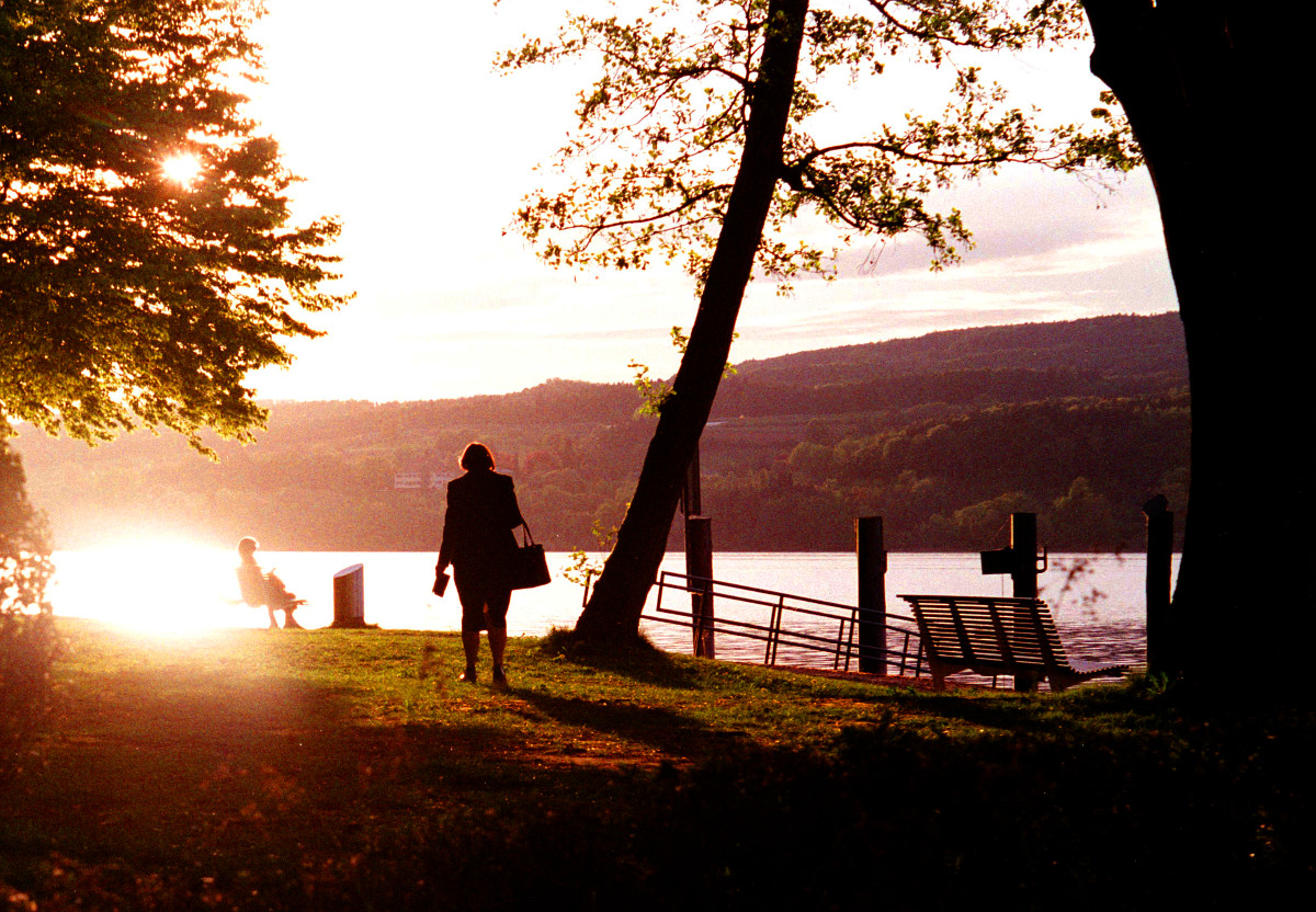 öffnet. In Mammern gibt es eine Mittagspause in einer Wirtschaft fast direkt gegenüber dem Hotel Adler, in dem ich bei meiner ersten Liegevelotour 2004 eingekehrt bin. Das Hotel habe vor einiger Zeit dicht gemacht, erzählt uns die Bedienung. Damals hatte ein junges Ehepaar den Betrieb erst vor kurzem übernommen, wenn mich nicht alles täuscht. Was da wohl passiert ist? Im Laufe des Nachmittags treffen wir in unserem Hotel kurz vor Steckborn ein und verbringen den Rest des Tages am See. Auf der anderen Seeseite liegt die Halbinsel Höri, also Deutschland. Ich frag mich, wie es den Schweizern hier während des zweiten Weltkrieges zu Mute war, als Krieg und Frieden nur durch ein paar hundert Meter Wasserfläche getrennt waren. |