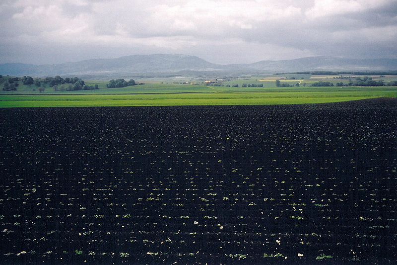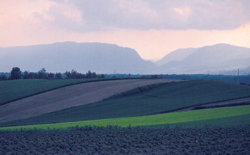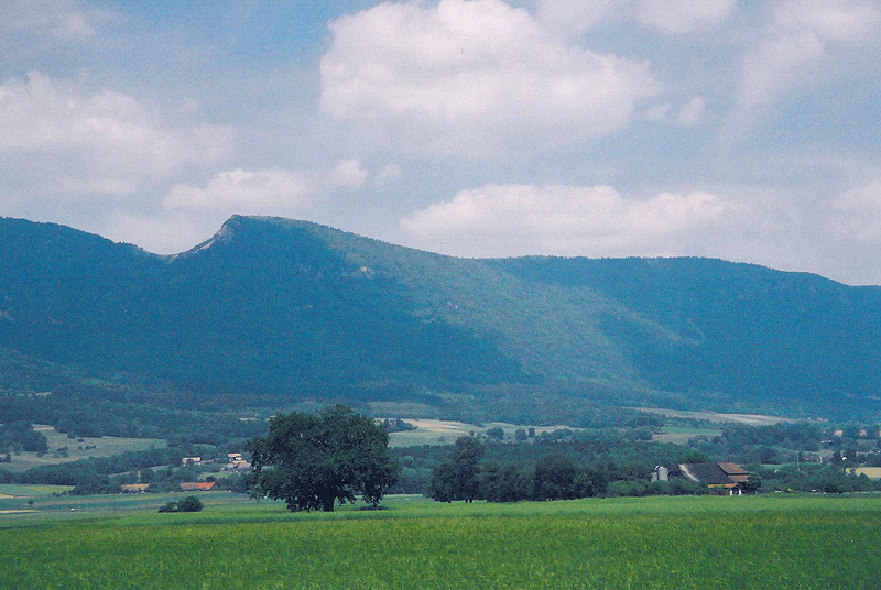 den blauen Jurahöhen im Hintergrund, sind enttäuscht weil wir in den Dörfern
