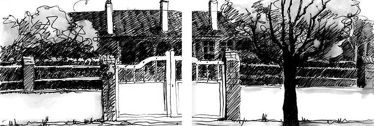 nebenan mondän wirkende Eigenheime mit riesigen Vorgärten. Es ist ein