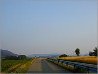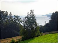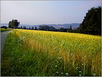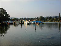 Als ich über den Rhein setze, mit der glitzernden Gegenlichtstimmung zur Linken und dem Blau des Flusses und der Hügel auf der anderen Seite, den Anstieg bis zum Bahnhof hinaufklettere, den Radwegweisern des Seeradweges folge und auf halber Höhe abwechselnd durch Wohngebiete und freies Feld gleite, leckt sich die Sonne durch einige Nebelfelder und der Wind frischt auf - man wird wohl bald die ersten weissen Segel sehen. Ich bin so gut wie alleine auf der Fahrt entlang des Untersees. Das ist mir ganz recht so, denn hier rollt es gut, wenn man nicht durch nebeneinander fahrende Radler ausgebremst wird, und ausserdem mag ich diese Strecke hier recht gerne. Oft fährt man direkt am Seeufer entlang oder kommt durch sehenswerte Städtchen wie Steckborn oder Ermatingen. In Kreuzlingen "gönne" ich mir einen Umweg, weil ich die Beschilderung übersehe, bin dann jedoch relativ schnell wieder auf Spur, die Richtung ist ja klar. Und jetzt wird's recht eintönig. Die Trasse ist gut ausgebaut, weitestgehend asphaltiert, aber kerzengerade und abseits der grossen Wasserfläche. Immerhin läuft es gut, es ist ja fast eben. Mit der Zeit nimmt nun der Verkehr zu, je mehr der Vormittag voranschreitet, desto mehr Radler sind unterwegs. Aber es ist immer noch in Ordnung. Visuell interessant wird es erst wieder so ab Romanshorn, wo man an Hafen und Seepromenade entlang fährt, ebenso in Arbon, Horn, Rohrschach. Mein Hotel in Rohrschacherberg ist bald gefunden, ich kenne den Weg ja noch vom letzten Jahr. Um die Mittagszeit geniesse ich schon ein Erdbeereis im Garten, mache Siesta, und als ich später im hauseigenen Solbad plantsche, fühle ich mich phantastisch, irgendwie so...äh..."Vagabund Deluxe"... Später bekomme ich noch die Schlusssequenz der heutigen