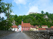 Hier ist nun ein Eckpunkt dieser Reise erreicht. Von nun an radle ich nach Norden und möchte jetzt erstmal den sehenswerte Gegend von hier bis zum Städtchen Kallmünz erleben. Der ruhige Weiden gesäumte Fluss, Angler, Enten und Schwalben, Sonntagmorgenstimmung. Das ändert sich allerdings langsam und immer mehr Radfahrer bevölkern den Weg entlang der Naab. Es sind mehr Radler mit Gepäck unterwegs, als ich die letzten Tage über gesehen habe. Das liegt vielleicht daran, dass dieser Abschnitt hier zum Fünf Flüsse Radweg gehört. Bald bin ich in Kallmünz, ist ja nicht weit. Die Stadt putzt sich von Jahr zu Jahr mehr heraus und scheint auch immer mehr Touristen anzulocken. Kein Wunder, sieht schliesslich recht schmuck aus, wie sich die Häuschen da an oder unter die Felsen schmiegen.