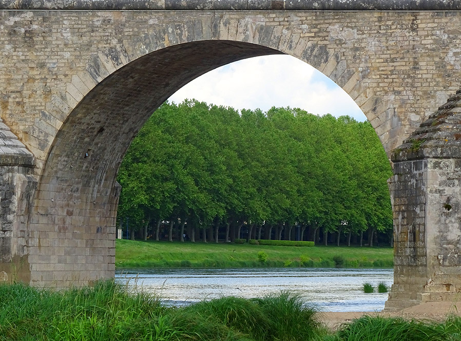 Wir blicken auf eine Etappe zurück, die wieder mit strahlend blauem Himmel beginnt. Zuerst gleiten wir vorsichtig inmitten all der zur Arbeit fahrenden Automobilisten auf der grossen D 955 hinunter in den Ort St. Satur, wo wir zuerst einen Supermarkt aufsuchen, um unseren Vorrat an Lebensmitteln und Trinkwasser wieder aufzufüllen. Dann folgen wir wieder den Radwegweisern und tun gut daran. Wie gestern schon hat man vor uns ein Asphaltband entrollt, auf dem sich prima radeln lässt, zumal an diesem sonnigen Frühsommermorgen. |