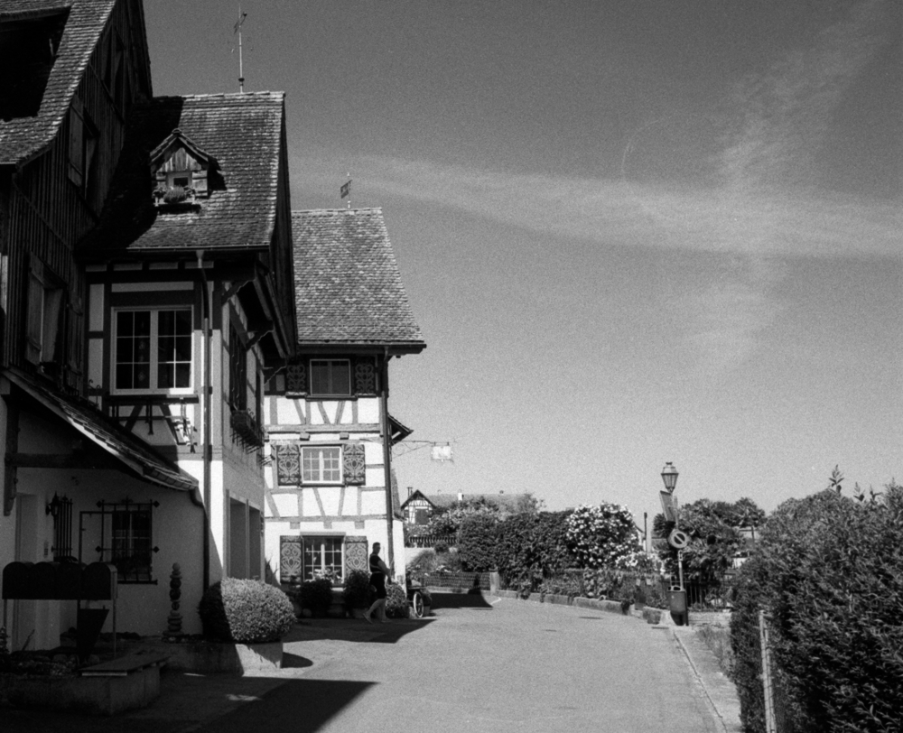 durchhält, wie er es die letzten fünfzehn Jahre getan hat. Gestiefelt und geschnürt laufen wir durch das morgenstille Kreuzlingen. Es ist Pfingsten. Und sonnig. Was haben wir doch für ein Glück mit dem Wetter! Jenseits der Stadt wartet ein Anbaugebiet für Feldfrüchte auf uns, dann tauchen wir in den Auwald ein, der das Südufer des Seerheins ziert. Eine Reihe kleiner Städtchen mit Fachwerkhäuschen wartet auf uns. Gottlieben zum Beispiel. Blickt man in die Ferne, so kann man die Vulkanlandschaft des Hegau und die lange Allee erkennen, die zur Insel Reichenau führt. Als der Tag voranschreitet, füllen sich die Wege mit Radlern, Wanderern und Joggern. Leider geht das in den Passagen, wo Wander- und Radweg auf gleicher Trasse geführt werden, nicht immer ohne eine gewisse Rigorosität von Seiten des vermeintlich Stärkeren. Man kann gut an sich selber beobachten, wie die eigene Aggression geweckt wird, wenn einem mit genau der gleichen Emotion begegnet wird. Doch das soll nicht darüber hinweg täuschen, dass heute wirklich ein schöner Wandertag ist. Und ein recht langer noch dazu. Und doch halten wir gut durch mit unserem mitgeschleppten Gewicht. Am frühen Nachmittag kommen wir in Steckborn an, beziehen unser Hotelzimmer und können noch den restlichen Nachmittag am See verbringen - freilich dick eingepackt, denn der Wind ist wirklich recht kalt. |
